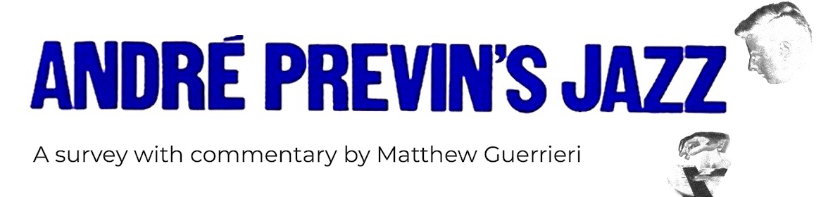 Previn’s surreal flourishes had always been so cushioned by his mainstream disposition (and had always been repeated enough to seem merely a library of licks) that it’s easy to forget just how weird he could be. Not that this album is an avant-garde turn in any real way. But Previn always had a taste for trial-and-error beyond what a casual perusal of his various catalogs might have indicated. (Recall the rock band crashing the party in his Guitar Concerto.) Working with a 50s sort of small group—Lowe and Brown joined by drummer Grady Tate, and Warren Vaché, Richard Todd, and Jim Pugh on cornet, horn, and trombone, respectively—Previn is very much in a playful mood.